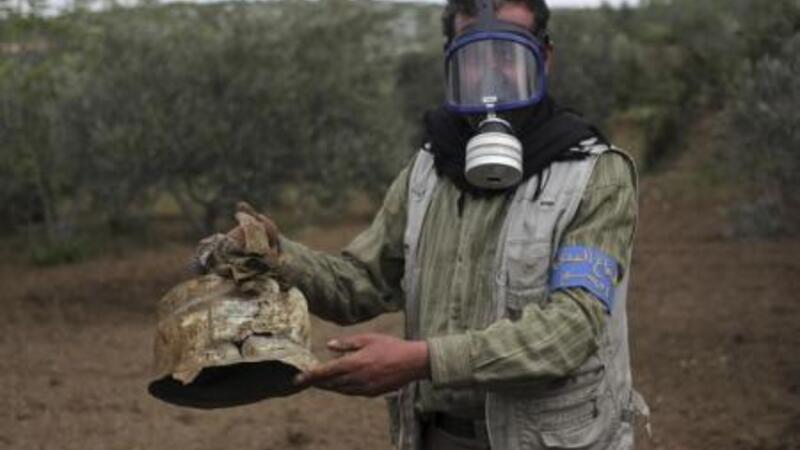 رجل بالدفاع المدني بموقع ما قال نشطاء انه هجوم بالغاز في قربة بإدلب