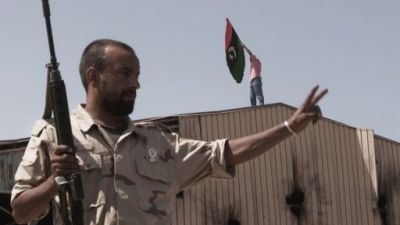 صورة من الارشيف لمقاتل ليبي يشير باشارة النصر