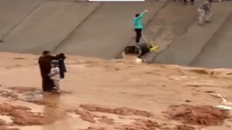 الفيديو، الذي تداوله رواد مواقع التواصل الإجتماعي، يظهر شجاعة أحد الشبان، بعد أن قفز في مياه السيل، مخاطرا بحياته، في محاولة منه للوصول إلى الطفل المحاصر بالمياه من جميع الاتجاهات.