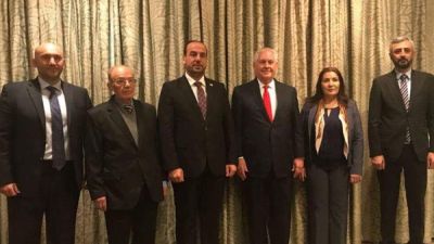 وقبل وصول تيلرسون التقى ديفيد ساترفيلد وريتش اوتزن من الخارجية الأميركية أعضاء الوفد السوري، وتحدثا معهم حول مؤتمر الحوار السوري في منتجع سوتشي الروسي الذي اختتم أعماله في 31 كانون الثاني/يناير الماضي وأخبروهم بأن الوزير رحب بأفكارهم حول سير الأمور.