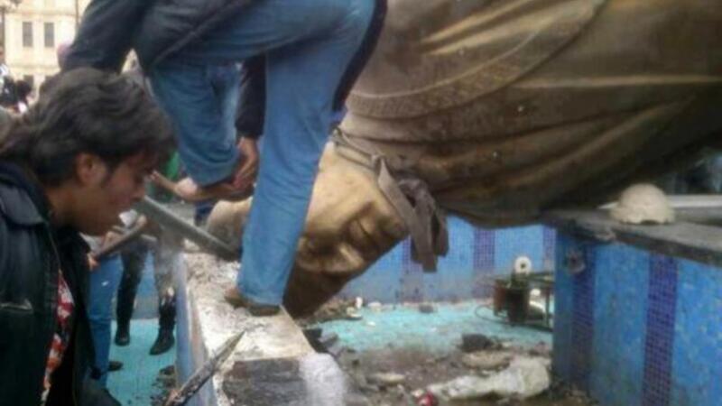وأظهرت صور التقطها نشطاء من المعارضة موقع حراسة تشتعل فيه النيران ورجالا يمزقون صورة للأسد وتمثالا ساقطا لحافظ الأسد الذي تولى السلطة عام 1970.