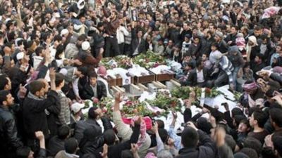 وفي الاثناء، تبادل نشطاء المعارضة ووسائل الاعلام الحكومية السورية الاتهامات يوم الاربعاء بشأن مقتل 25 شخصا على الاقل بينهم نساء وأطفال في بلدة دوما القريبة من دمشق.