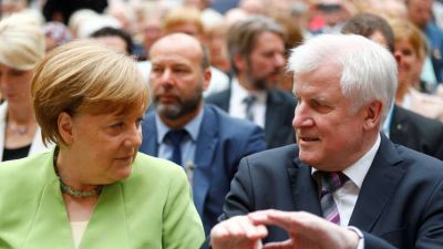 المستشارة الألمانية أنغيلا ميركل وزعيم الاتحاد الاجتماعي المسيحي، وزير الداخلية، هورست زيهوفر