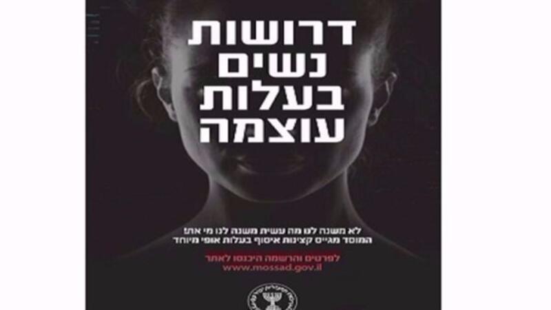ونشر الموساد، حسب الموقع، إعلانات في أكثر وسائل الإعلام الإسرائيلية انتشاراً، إلى جانب شبكات التواصل الاجتماعي، لتجنيد جاسوسات إسرائيليات، جاء فيها:"مطلوب نساء ذوات شخصية مميّزة، لوظيفة ضابطة جمع معلومات، الوظيفة الأعلى مرتبة، والأكثر معرفة في الجهاز". وأضاف الجهاز أنه يبحث عن موظفات "كما تقول اللغة العامية لوظيفة تجسّس".