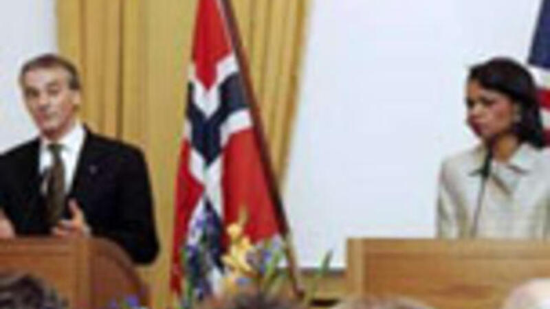 وتزور رايس العاصمة النرويجية لمدة 24 ساعة تشارك خلالها في اجتماع لوزراء خارجية دول حلف شمال الاطلسي وامتنعت رايس عن انتقاد النرويج واشادت بجهود ستوير.
