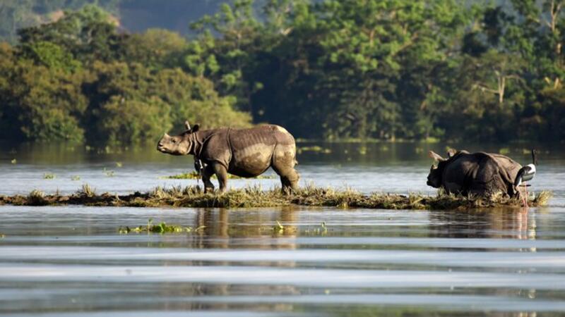 كما تبذل السلطات جهودا لمساعدة حيوانات وحيد القرن وأنواع أخرى من الحيوانات البرية أصبحت في خطر بعدما غمرت مياه الفيضانات متنزه كازيرانجا الوطني المدرج على قائمة اليونسكو للتراث العالمي.