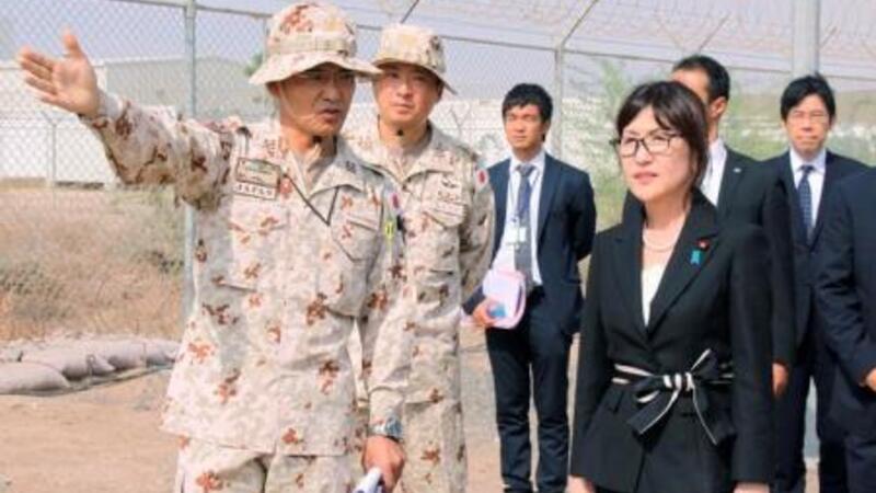 وزيرة الدفاع اليابانية تومومي إينادا خلال زيارة للقاعدة العسكرية لبلادها في جيبوتي