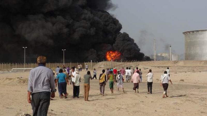 وأكد مصدر مسؤول بشركة مصافي عدن (رفض ذكر اسمه)، إن "مجهولين زرعوا عبوة ناسفة، انفجرت في أحد أنابيب الغاز الرئيسة، وتسببت باشتعال النيران فيه بكثافة". فيما يتوقع أن يكون الحوثيون وراء هذا التفجير.