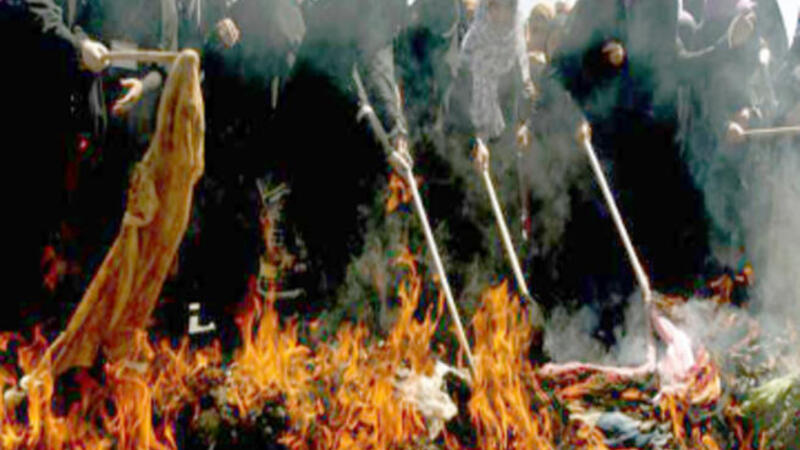 حرق البراقع احتجاجا على صالح