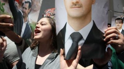 مؤيدون للاسد يرفعون صوره قبل الادلاء باصواتهم في دمشق