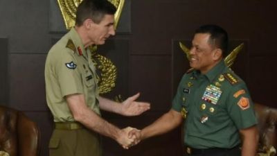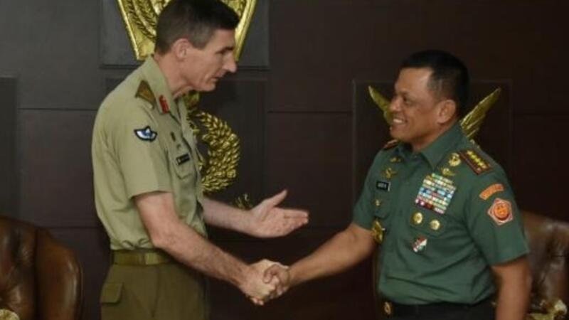 قائد الجيش الاندونيسي الجنرال غاتوت نورمانتيو (يمين) وقائد الجيش الاسترالي انجوس كامبل في شباط/فبراير الفائت.