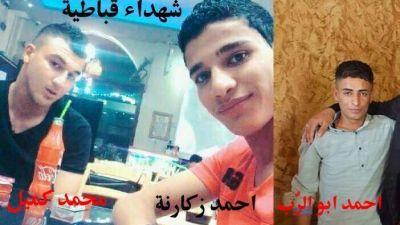 وقالت وكالة الانباء الفلسطينية ان الشهداء هم احمد راجح اسماعيل زكارنة، ومحمد احمد حلمي كميل، واحمد ناجح ابراهيم أبو الرب وجميعهم من بلدة قباطية جنوب جنين.
