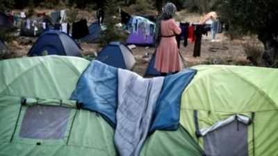 مخيم عشوائي للاجئين في غابات جزيرة ساموس اليونانية