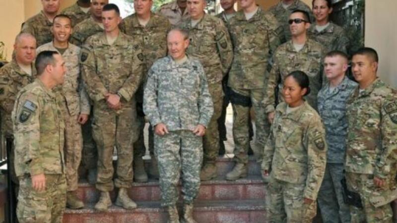 ووصل ديمبسي قادما من افغانستان حيث تعرضت طائرته، طراز سي-17، الى اضرار جراء هجوم صاروخي وهي متوقفة، وادى الى اصابة جنديين اميركيين.