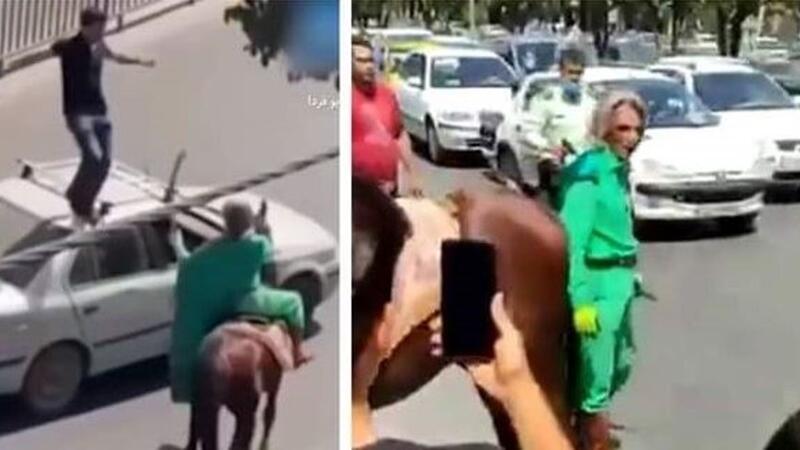 ويظهر مقطع فيديو شخصا يرتدي لباسا أخضر ويحمل سيف "ذو الفقار" في شوارع أصفهان، يدور حول سيارة، ما دفع سائق السيارة إلى النزول منها، والصعود عليها، محاولا إبعاد "الفارس".