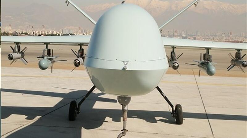 وكشف الجيش عن أحدث طائراته المسيرة "كمان 22" لأول مرة، التي تعتبر "طائرة استراتيجية ومتعددة المهام وأول طائرة مسيرة عملاقة وقتالية للجيش الإيراني تستطيع التحليق لـ24 ساعة متواصلة ومداها العملياتي ثلاثة آلاف كيلومتر"، وفقا لوكالة "فارس".
