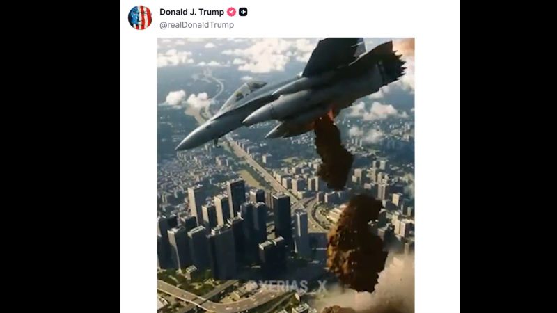 يُظهر الفيديو ترامب وهو يقود مقاتلة حربية كتب عليها "الملك ترامب"، في مشهد وصفه المراقبون بـ"الاستعراض الجنوني".