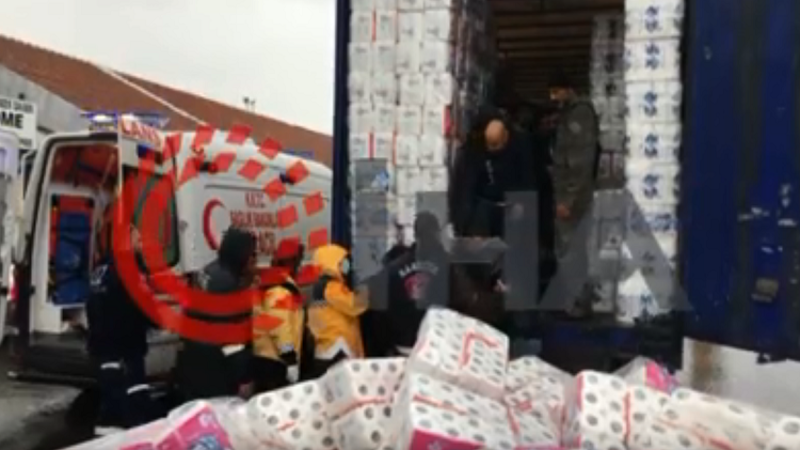 بالفيديو.. ضبط 33 لاجئا سوريا في شاحنة محملة بمناديل الحمام