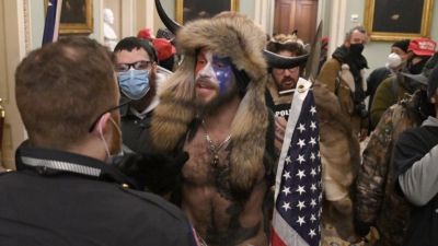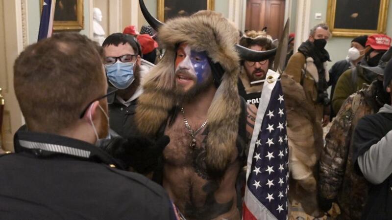وأحد هذين الرجلين كان يتجول بملابس الشخصية الشهيرة "باتمان"، بينما كان الآخر  يضع على رأسه قرنين، ويقود مجموعات الاقتحام للكونجرس.