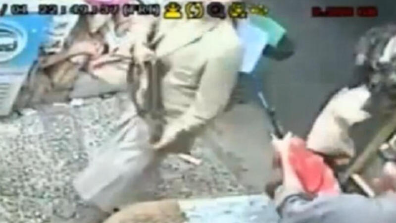 أظهر تسجيل فيديو شجاعة شاب يمني بالدفاع عن نفسه وعن المتجر الذي يقف بائعا فيه، وذلك حينما حاول شخصان مسلحان برشاشين السطو على المحل.