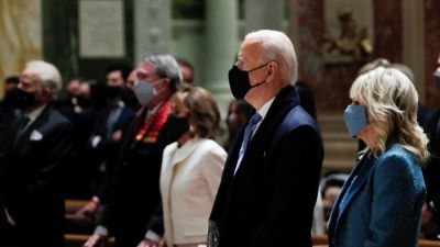 وقال الرئيس الجديد للمكتب البيضاوي، في حوار قصير مع المراسلين، إن القداس كان "جميلا". كما رافق بايدن إلى الكنيسة ابنه هانتر، واثنان من أحفاده، فينيغان ومايسي.
