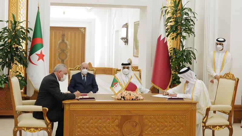 وجرى توقيع الاتفاقيات ومذكرات التفاهم في الديوان الأميري القطري، حيث استقبل أمير قطر، الشيخ تميم بن حمد آل ثاني، الرئيس الجزائري، عبد المجيد تبون، الذي كان وصل إلى الدوحة، مساء أمس السبت، في زيارة تستغرق يومين.