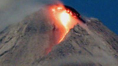 وتصاعدت بين الحين والاخر سحب كثيفة ودخان رمادي داكن اللون من فوهة البركان يوم الاحد ولكن لا توجد اشارة واضحة الى تدفق حمم ساخنة من ميرابي وهو أحد اكثر البراكين خطورة فيما يعرف "بحلقة النار" في منطقة المحيط الهادي.