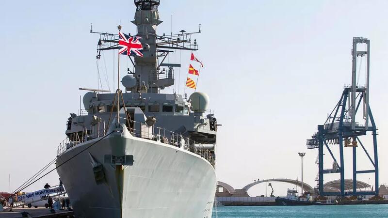 الفرقاطة الحربية البريطانية اتش ام اس مونتروز في ميناء ليماسول في جنوب قبرص