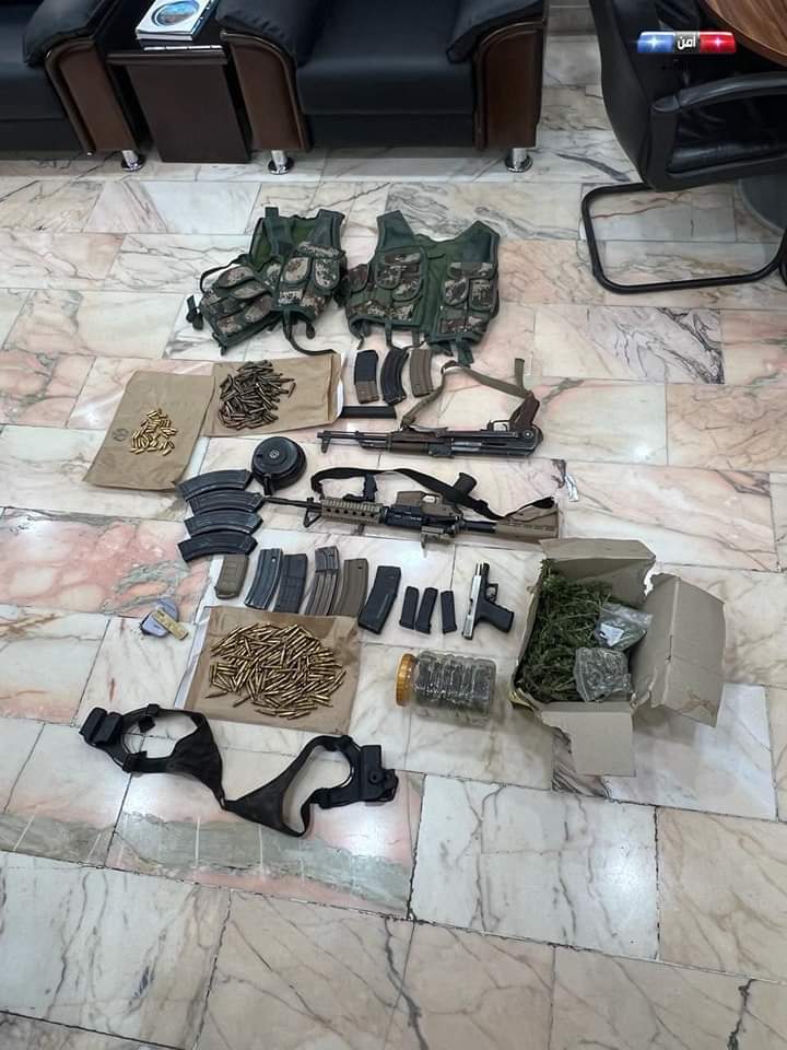 وأكّد الناطق الإعلامي أنه ضبط بحوزته ثلاثة أسلحة نارية، وكمية من الذخيرة الحيّة، وكمية من الحشيش المخدر، وستتم إحالته لمصادر طلباته فور استكمال التحقيقات.