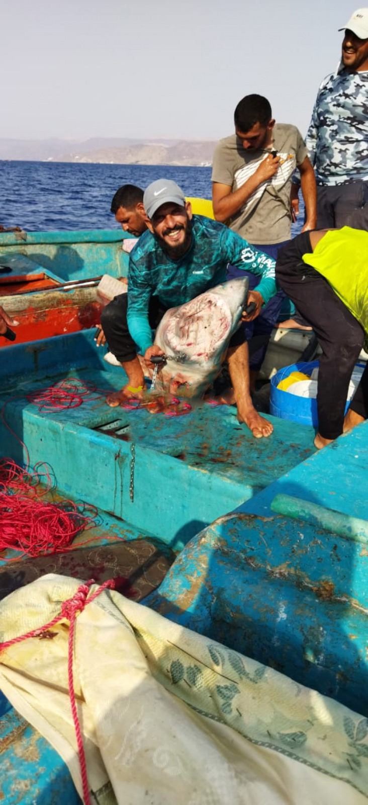 بعد حادثة السائح الروسي: اصطياد سمكة قرش ضخمة في العقبة (صورة)