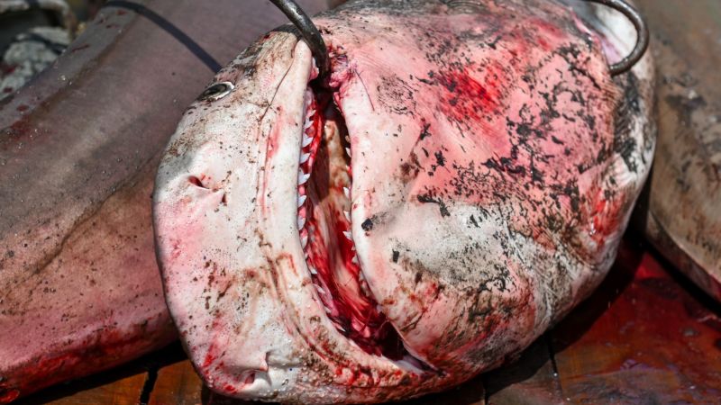 سمكة قرش بعد اصطيادها (أ ف ب)