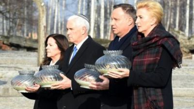 نائب الرئيس الاميركي مايك بنس في معسكر اوشفيتز في بولندا