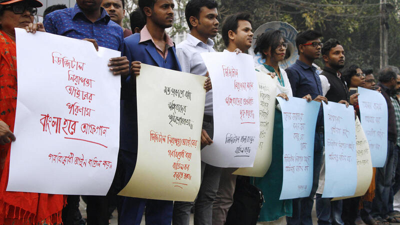 ويعتبر صحافيون ونشطاء حقوقيون أن قانون الأمن الرقمي الذي أُقر في العام 2018 يشكل تهديدا جديا لحرية التعبير في البلاد البالغ عدد سكانها 168 مليونا.