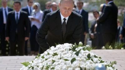 بوتين يضع اكليل زهور على قبر كريموف في سمرقند