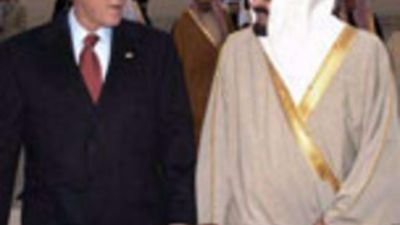 ووصل بوش قادما من دبي في اليوم السادس من جولته في المنطقة وكان العاهل السعودي الملك عبد الله بن عبد العزيز في استقباله لدى نزوله من الطائرة. وتوجه بوش والملك عبدالله بعدها الى قصر الضيافة حيث ينزل المسؤولون الاجانب الذين يزورون الرياض.