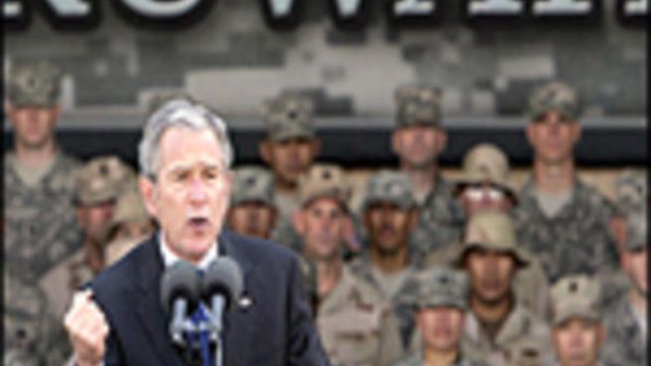 وقال جورج بوش مخاطبا الجنود الـ9000 بالمعسكر: "علينا فعل كل ما بوسعنا لجعل 2008 يشهد تقدما أكبر، مضيفا ان "نجاحا طويل الامد في العراق حيوي لاستقرار الشرق الاوسط، وان الولايات المتحدة لا ينبغي ان تتخلى عن اصدقائها."