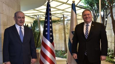 وقام بومبيو بزيارة لإسرائيل يوم الأربعاء استغرقت يوما واحدا تضمنت الاجتماع مع رئيس الوزراء الإسرائيلي بنيامين نتنياهو وشريكه في الائتلاف بيني جانتس.