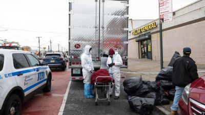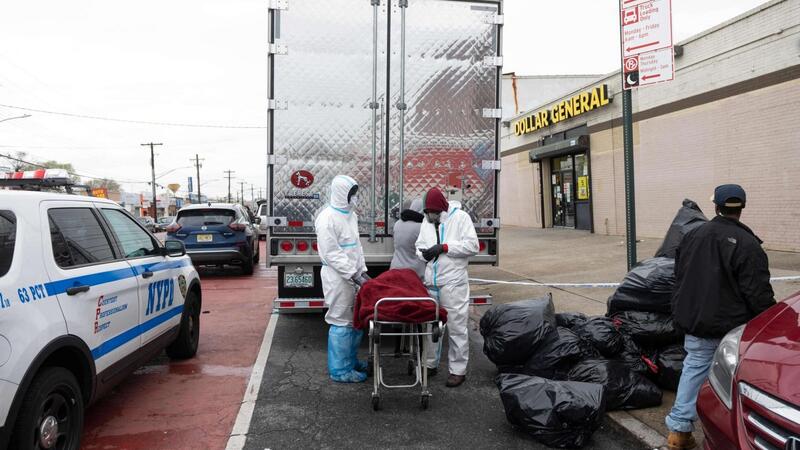 والأربعاء تمّ العثور على عشرات الجثث -ما يصل إلى 60 بحسب وسائل إعلام أمريكية- في شاحناتٍ أمام مؤسسة أندرو كليكلي لدفن الموتى الواقعة في شارع كبير في بروكلين.