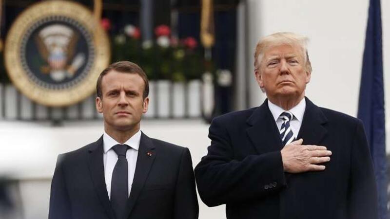 وصرح ترامب "الآن زمن القوة.. دعونا نكون أقوياء.. دعونا نكون متحدين.. دعونا نكرم ماضينا ونواجه مستقبلنا بكل ثقة وكبرياء.. ونسمح للولايات المتحدة وفرنسا بالوقوف إلى الأبد للتضامن من أجل قضية الحرية والسلام النبيلة". وجاءت تصريحات الرئيس الأمريكي خلال استقباله الرئيس الفرنسي إيمانويل ماكرون بالبيت الأبيض يوم الثلاثاء، علما أن اللقاء الأمريكي الفرنسي سيبحث مصير الاتفاق النووي الإيراني والوضع في سوريا.