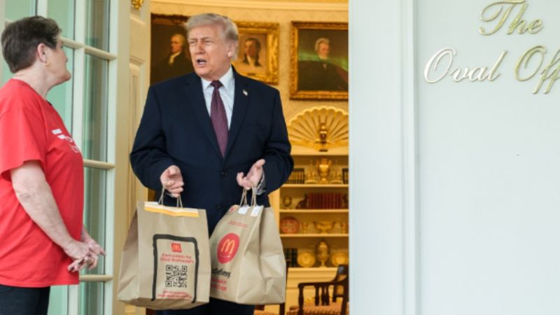 قام دونالد ترامب بمنح عامل توصيل طلب وجبة من مطعم ماكدونالدز إكرامية بقيمة 100 دولار، وذلك عقب تسلّمه الطلب بنفسه من البيت الأبيض.