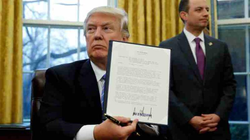 وقع الرئيس الأمريكي دونالد ترامب يوم الاثنين أمرا تنفيذيا تنسحب الولايات المتحدة بموجبه رسميا من اتفاق تجارة الشراكة عبر المحيط الهادي الذي يضم 12 دولة ملتزما بذلك بأحد تعهدات حملته الانتخابية العام الماضي.