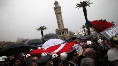 كرمت تركيا الجمعة الشرطي الذي حال دون وقوع مجزرة في مدينة ازمير غرب تركيا، وودعته وداع الابطال، فيما تشير التقارير إلى أن منفذ هجوم ليلة رأس السنة في اسطنبول لا يزال في المدينة.
