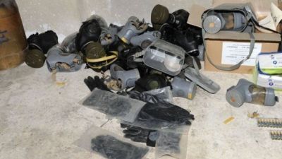 اقنعة غاز واقية يزعم الجيش السوري انه ضبطها في احد احياء دمشق