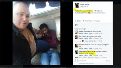 ونشر شخص يدعى "شفق كارتال"، من مدينة إزمير وعرّف عن نفسه بأنه صانع أحذية، صورة على حسابه بموقع فيسبوك، وهو يدوس بقدمه على شاب سوري، وعنون منشوره بالقول: "الانتقام التركي من السوري".