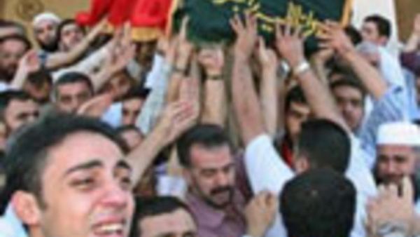 وتم لف النعش بالعلم السوري وارتدى اتباعه عصابات رأس حمراء. وقدر احد الاشخاص عدد المشاركين في الجنازة بنحو 20 الف شخص. ولم تصدر الحكومة السورية اي تعليق على القتل.