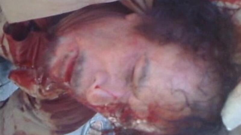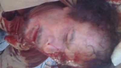 صورة ملتقطة من تسجيل فيديو لجثة القذافي