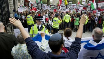 تظاهرات امام مقر كاميرون في لندن قبيل وصول نتانياهو
