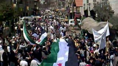 واظهرت مقاطع على الانترنت تظاهرة حاشدة في مدينة سرمين التي اقتحمتها القوات النظامية وعادت وانسحبت منها في الايام الماضية، رفع المتظاهرون فيها لافتات "مع كل قطرة دم نزداد اصرارا" و"لن نركع الا لله".
