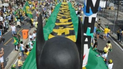 وبثت مكبرات صوت مثبتة على ظهر شاحنات النشيد الوطني وموسيقى السامبا، خلف لافتة كتب عليها "فلترحل ديلما والسجن للولا" دا سيلفا، سلفها المتهم بعرقلة عمل القضاء في اطار التحقيق في فضيحة الفساد في شركة النفط الوطنية بتروبراس.