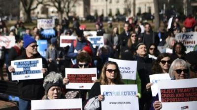 وقال الناشط البيئي سام كروك (65 عاما) وهو يحمل لافتة يتهم فيها ترامب بالديكتاتورية، إن الرئيس الاميركي "ينتهك كل القواعد لتحقيق اهدافه".